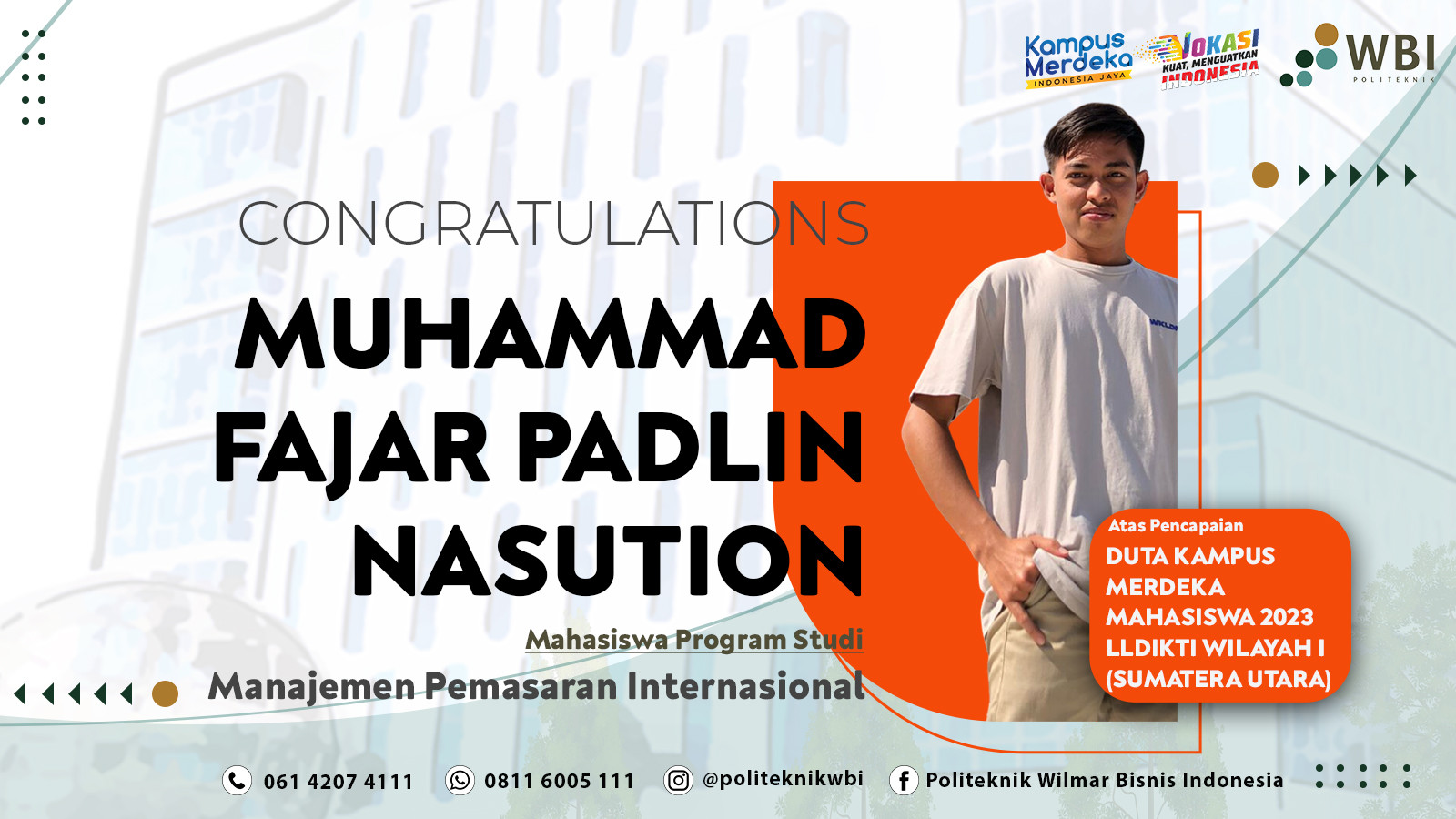 2023 tingkat Regional 1. Dalam seleksinya Politeknik WBI dinyatakan