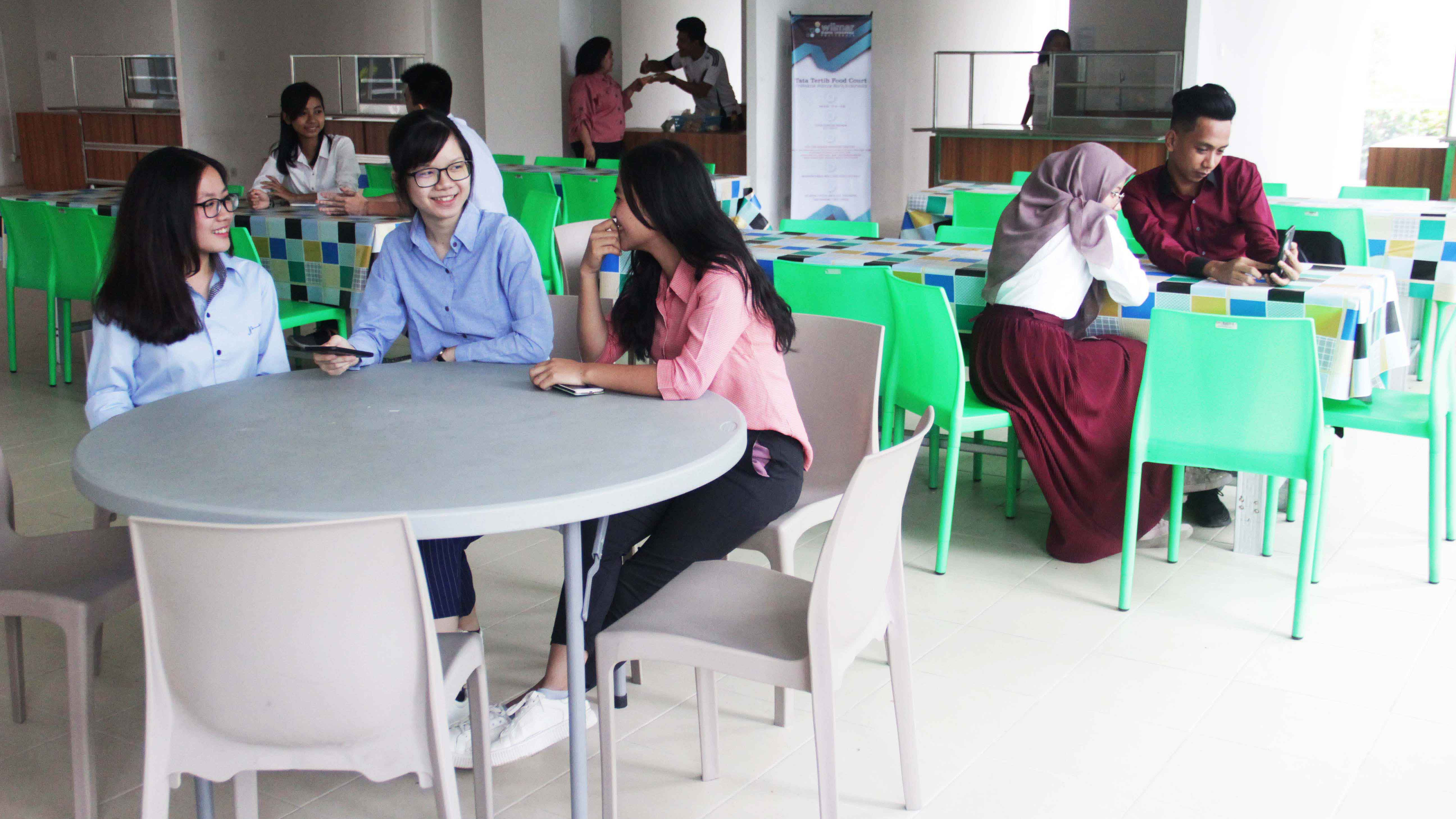 Food Court WBI merupakan salah satu fasilitas untuk tempat makan dan minum yang berlokasi di Lantai Ground kampus Politeknik Wilmar Bisnis Indonesia (WBI). Food Court ini dapat melayani pengunjung hingga 250 orang. Dengan desain dan dekorasi ruang yang minimalis, Food Court WBI memberi suasana yang nyaman untuk bersantap, sekaligus menjadi meeting point bagi mahasiswa, dosen, dan tendik Politeknik WBI untuk bertemu dan bercengkerama dengan teman maupun kolega.